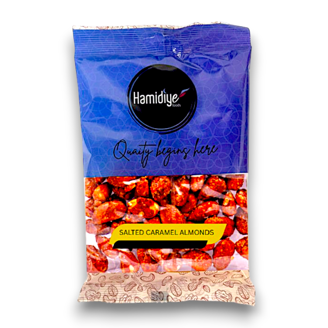 Hamidiye Salted Caramel Almonds (Nut Bag) is a product that offers a delicious combination of salted caramel and almonds. Its key features include a perfect balance of sweet and salty flavors, high-quality almonds, and a convenient nut bag packaging. The benefits of this product include a satisfying snack option, a good source of protein and healthy fats, and a unique taste experience. Its unique selling points are the indulgent caramel coating, the premium quality of the almonds, and the convenient on-the-go packaging.