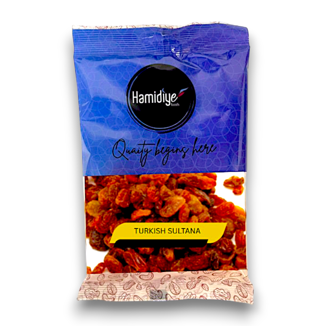 The Hamidiye Turkish Sultana (Nut Bag) is a product that offers a convenient and practical way to store and enjoy sultanas. Its key features include a durable and reusable bag made from high-quality materials, a secure seal to keep the sultanas fresh, and a compact size for easy storage. The benefits of this product include the preservation of the sultanas' taste and texture, the prevention of moisture and air exposure, and the ability to carry the bag on-the-go. Its unique selling points are its traditional Turkish origin, the use of premium sultanas, and the assurance of freshness and quality.