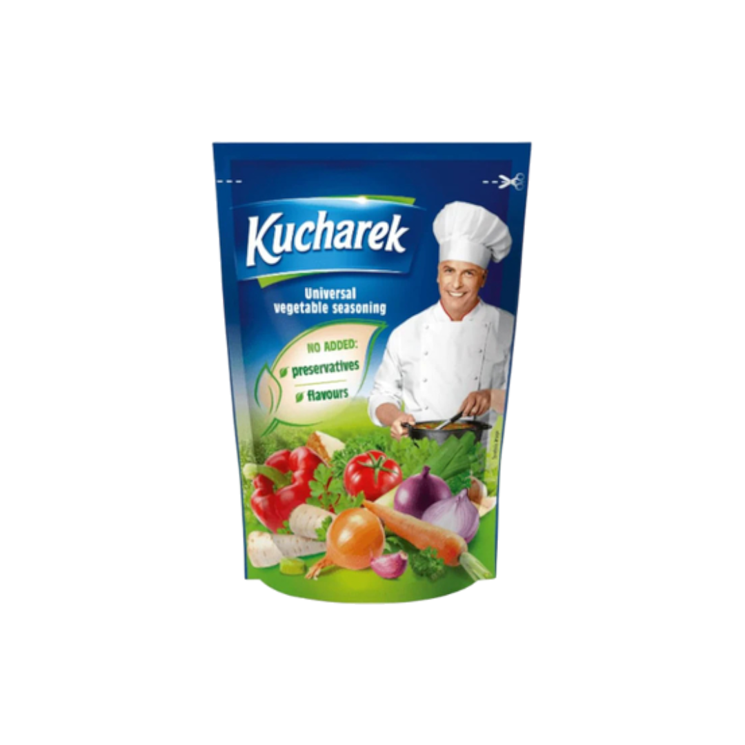 Kucherek Vegetable Seasoning is a versatile product that enhances the flavor of vegetables. Its key features include a blend of high-quality herbs and spices, a balanced taste profile, and a convenient packaging. The seasoning adds depth and richness to vegetable dishes, making them more delicious and enjoyable. Its unique selling points are its ability to elevate the natural flavors of vegetables, its versatility in various recipes, and its convenience for everyday use.