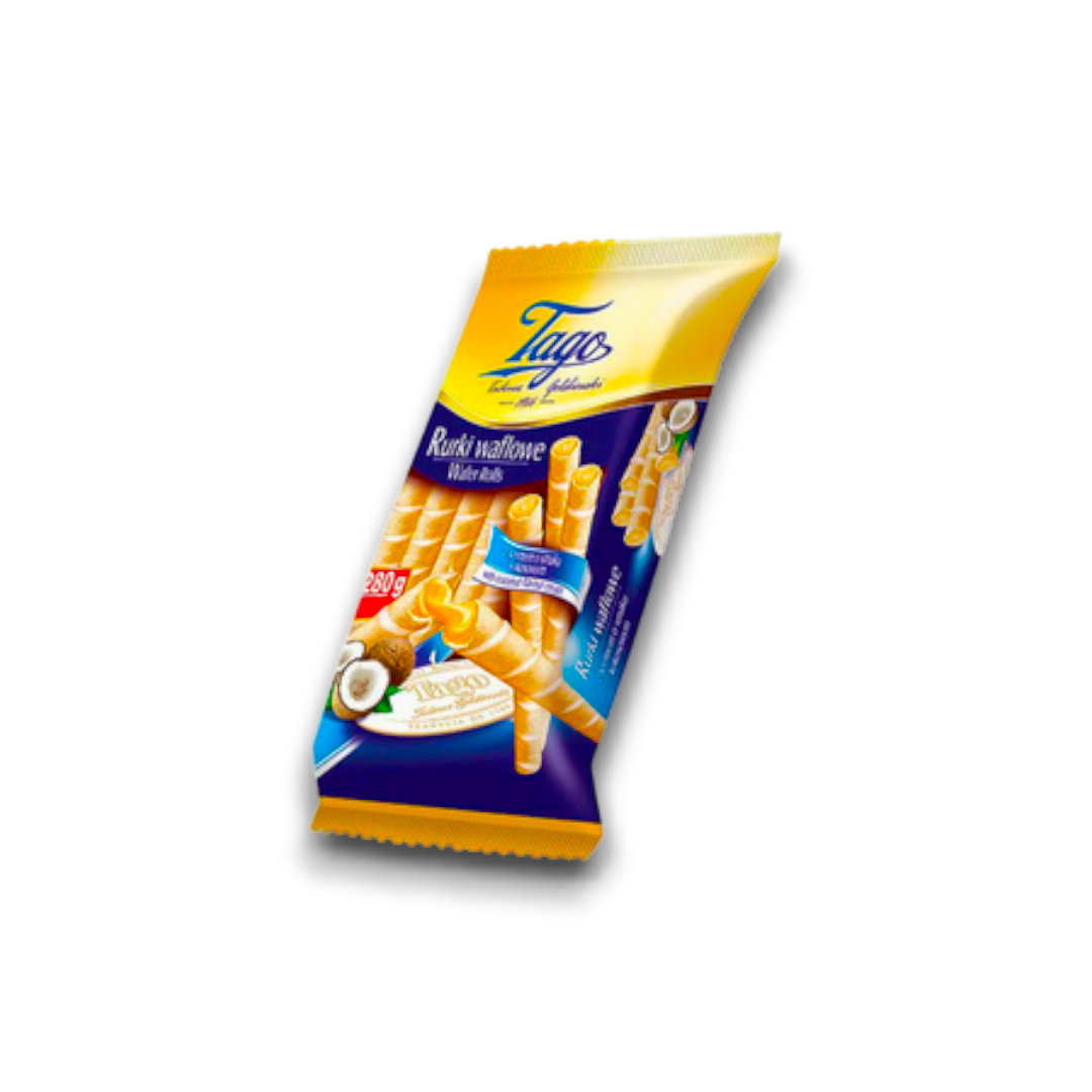 Tago Coconut Wafer Roll is a delicious snack that offers a crispy wafer filled with a rich and creamy coconut filling. Its key features include a perfect balance of sweetness and crunchiness, making it a delightful treat for coconut lovers. The product's benefits include being made with high-quality ingredients, providing a convenient on-the-go snack option, and being suitable for vegetarians. Its unique selling points lie in its authentic coconut flavor, the thin and crispy texture of the wafer, and the indulgent experience it offers.