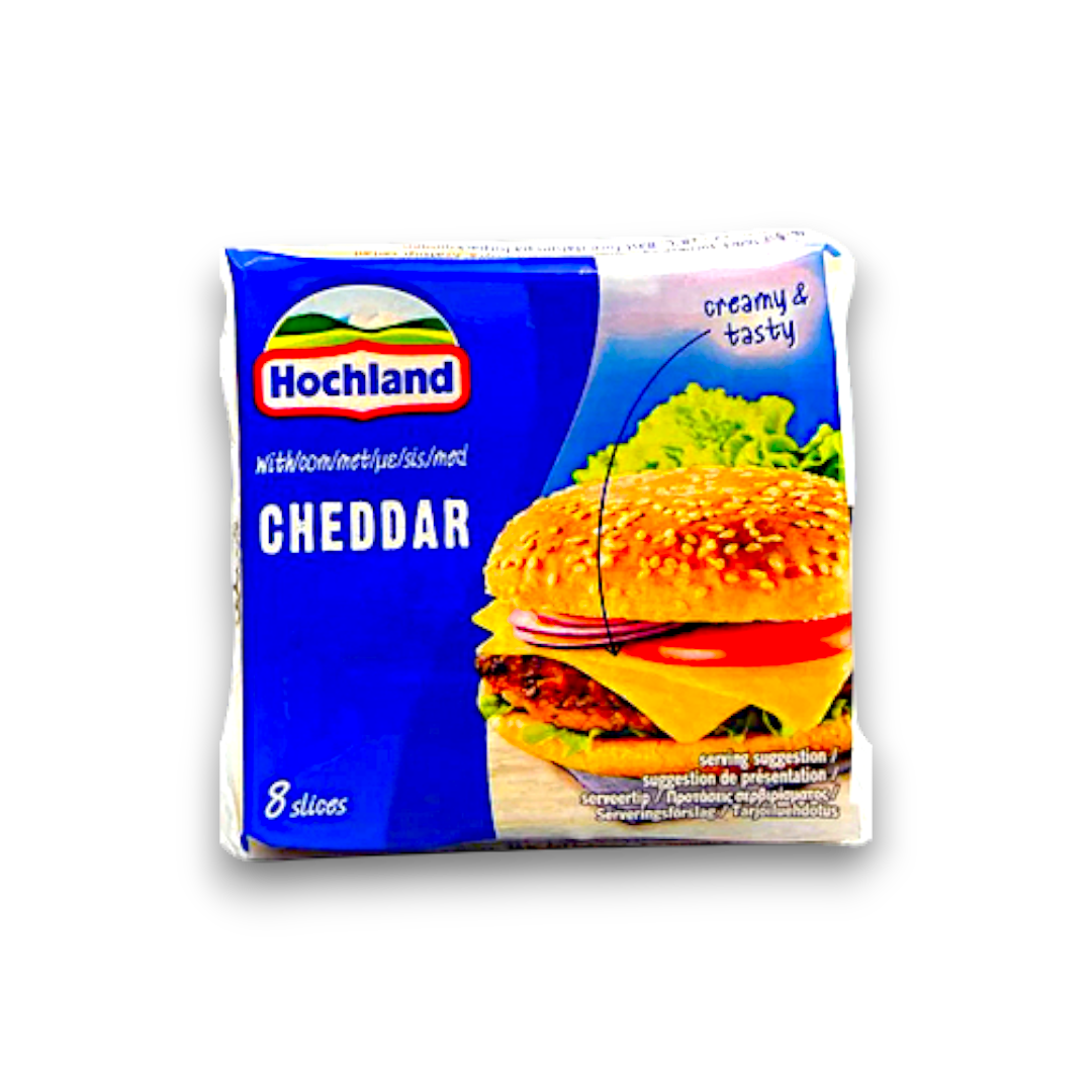 Hochland Cheddar Cheese is a high-quality cheese known for its rich and creamy taste. It is made from carefully selected ingredients and aged to perfection, resulting in a distinct flavor profile. This cheese is versatile and can be used in various dishes, from sandwiches to pasta. Its key features include its smooth texture, sharpness, and excellent melting properties. The benefits of Hochland Cheddar Cheese include its ability to enhance the taste of any dish and its nutritional value, being a good source of protein and calcium. Its unique selling points are its premium quality, superior taste, and the brand's commitment to using only the finest ingredients.